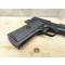 Le chargeur est à double pile contient 13 cartouches ( +1 cartouche dans la chambre cela fait 14 !) se graille facilement et alimente parfaitement grâce à la forme de la languette en matière composite du chargeur qui présente bien la cartouche en face de la chambre. Alimentation et éjection sont très fluides et fiables. L'extracteur et le percuteur sont identiques à ceux du 1911 (série 80) et sont parfaits. Contrairement à ce qu'on pourrait penser, la poignée n'est pas énorme et tient bien dans la main d'un homme "normal" ! Le poids de l'arme approvisionnée se fait sentir mais n'est pas insupportable. Au tir, le recul est bien amorti par le poids de l'arme approvisionnée et de la glissière, aidé par le ressort récupérateur plus dur que celui du 1911.