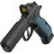 Le grippe marquant sur la poignée assure à tout moment une prise en main antidérapante. Avec son mécanisme de détente amélioré, la résistance plus faible et un backlash réduit, le CZ Shadow 2 OR offre au tireur un pistolet fiable, visuellement personnalisable et surtout d'une précision accrue.