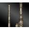 Monture en bois, entièrement filigranée de trompes de rinceaux en argent, achevées en palmettes en damasquine d’or.