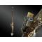Canon à pans, damas, bouche en corolle ; richement décoré de trois cartouches en argent, à frises de rinceaux feuillagés, portes architecturées et boutons de fleurs en damasquine d’or. Queue de culasse finement gravée.