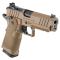 Le Prodigy de Springfield Armory reprend la plateforme éprouvée du 1911 et l'améliore grâce à un chargeur double pile et des caractéristiques axées sur la performance. Doté d'une finition Cerakote® Coyote Brown durable, le Prodigy est équipé d'une poignée en polymère montée sur une carcasse en acier forgé et offre des capacités de 17+1 et 20+1 coups. Le chargeur double pile alimente un canon lourd de 4,25 pouces avec une bouche à 11 degrés pour une précision optimale. Compatible avec les systèmes optiques, le Prodigy utilise des plaques AOS (Agency Optic System) avec une hausse intégrée, permettant un alignement parfait des organes de visée et une acquisition de cible intuitive. Chaque Prodigy est livré avec une plaque compatible avec le système HEX Dragonfly, et des plaques spécifiques à d'autres optiques sont disponibles séparément.