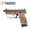 Le pistolet semi automatique G3 en finition TACTICAL possède un canon fileté en acier inoxydable, un revêtement CERAKOTE de couleur Patriot brown type DLC (Diamond like carbon) et une plateforme optic ready pour y adapter un viseur point rouge.