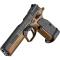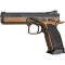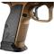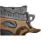 L'arme est livrée dans une superbe mallette contenant 3 chargeurs 20 coups, une chargette, un nécessaire d'entretien, un calepin, clés BTR et toutes sortes de pièces de rechange (ressorts de différents tarages, etc...). Le look de cette arme avec revêtement Cerakote Bronze, canon poli et plaquettes alu quadrillées est superbe. Le poids est conséquent (1.3 kg) mais indispensable a un enchaînement rapide des coups sans perte de la visée. La prise en main est excellente, le repose pouce et les leviers de sécurité ambidextres bien placés, bouton de chargeur assez proéminent pour un changement de chargeur ultra-rapide dans la course. Les organes de visé sont d'une netteté parfaite pour un tir instinctif, la hausse réglable est dans un logement fraisé dans la carcasse afin de réduire la hauteur pour une visée flat.