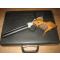 Pistolet de tir PCP avec ses accessoires d’origine. Le pistolet est la version « Match », la plus élaborée de la gamme. L’arme est montée avec une crosse Morini (la Rolls Royce suisse pour les armes de compétition).