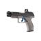 Le Walther Q5 Match Combo 5" est une réplique équipée d'un viseur à point rouge Umarex RDS 8. Sa glissière métallique intègre un support pour le viseur, et son canon étiré assure une performance accrue. Le viseur arrière est réglable latéralement pour un réglage précis.