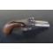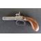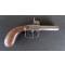 Ancien petit pistolet à percussion, saint Étienne, poudre noire, coup de poing, deux coups, double canon. Taille du canon 6cm, diamètre du canon intérieur 9mm, taille totale 18cm, poids 380 grammes. ATTENTION je signal que lors de l'armement du chien de droite, il ne tiens plus ou moins bien au premier cran mais au second ok, détente et percussion forte ok, celui de gauche ne tiens plus aux deux crans (ressort fort et percute fort manuellement ok). Non tésté en tir réel. Patine, usures et traces d'utilisation, pour collection, restauration, banque de pièces...
