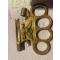 Arme mixte qui combine une arme contondante dite "coup de poing américain" avec une arme à feu à percussion annulaire, fabriquée à Saint-Etienne, modèle " le poilu 1914-1918 ", orné d'un aigle et d'un canon entouré de deux drapeaux.