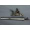 Pistolet modèle 1763-66 deuxième type de la manufacture royale de saint Étienne. L’arrière de la platine est signée « la Thuilerie », pour Charles Carrier de la thuilerie, entrepreneur stéphanois de 1775 à 1777 qui avait obtenu de faire figurer son nom sur les armes pour le compte du roi. le canon est poinçonné d’un EL couronné pour Étienne Lallier, Contrôleur des canons de de 1772 à 1778. poinçon HR couronné, pour Hubert Rozier, Contrôleur des platines de 1774 à 1777, sur la platine à corps rond modèle 1770. La monture en noyer est datée à son bord latéral gauche juin 76. Une réparation est à noter au niveau de la partie inférieure de l’encastrement de platine. Baguette poinçonnée (illisible) en fer à tête de clou. Très bon état, beaux marquages.