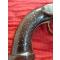 Joli pistolet très raffiné. Platine signée berleur. Il vient probablement d une paire en coffret. Crosse avec semi de clous en bronze. Canon qui semble.etre en Damas légèrement trombone à la bouche. Belle contre platine argent avec deux lions dos.a.dos et une tête de monstre. Le fut est légèrement abîmé. Trace d une très ancienne réparation à l avant. Calotte a motif de fleur. Mécanisme ok. Belle pièce. Environ 27 Cm de long.