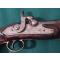 Pistolet percussion Britanique circa 1840.Large calibre.Trés restaurée au bois mais firm, Baguette pas original.Transformée de silex pour percussion?.Garnitures laton.Travaille bien aux deux crans.Cheminée ecrasée.