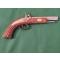 Pistolet percussion Française de voyage circa 1850.Large calibre 16 mm, Baguette me samble pas original ( ? ) .Platine avec ressorts forts, .Garnitures acier decorées .Au cannon au dessus " Cannon á Ruban " en letres d´or, efaçées.Travaille bien aux deux crans.Crosse neo rennançantiste avec un numero "1461" .Bois bien.Bon état.