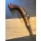 Pistolet à percussion avec chien . Bon état si l'on considère qu'il fût fabriqué il y a plus de 150 ans. Le canon Damas est lisse à l'intérieur , La cheminée de mise à feu est obstruée mais on peut la déboucher ou la changer. La baguette de chargement est absente. Le bois est marqué, mais rien n'est cassé ni même fendu. Le chien tient l'armement et percute bien lors de l'appui sur la détente. La clavette d'assemblage, d'origine est en parfait état. Le quadrillage et le décor autour de la crosse sont bien présents. Ma conclusion : Une arme superbe, comme un témoignage des productions du 19eme siècle.