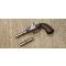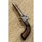 Pistolet XIXe à 2 canons juxtaposés à balles forcées. Calibre 10 mm. Bon mécanisme, toutes pièces numérotées 4. Cheminées à changer. Traces d'oxydations en surface. Bois en bon état. Bon état général. Petit prix...