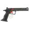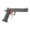 Fabriqué en polymère noir résistant, le SPA Expert est à la fois léger et solide. Sa crosse arrondie épouse naturellement la paume, et les zones quadrillées antidérapantes assurent une excellente tenue. La détente rouge et le verrou rouge du chargeur apportent une touche visuelle moderne. Une sécurité manuelle par bouton transversal empêche tout tir accidentel.