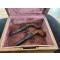 Belle paire de pistolets monocoup à poudre, type pistolet de poche, 17cm environ, bois en bon état, les deux positions accrochent bien, l'un très légèrement moins franc que l'autre, detente 100% fonctionnel, cheminées usagées.