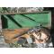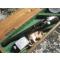 L’arme est dans sa boite, avec ses accessoires : une boite métallique de munitions (vide), un huiler et une baguette de nettoyage accompagnée d’un chiffon.