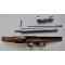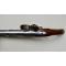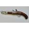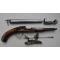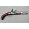 Pistolet à silex de cavalerie modèle 1763/1766 de fabrication révolutionnaire, canon de 230 mm de long à deux pans puis rond à bouche bien épaisse. chien à corps plat comme la platine gravée « Mre de Libreville » pour manufacture de Libreville, et poinçonné (comme au tonnerre du canon) L3 : L pour le contrôleur Leclerc, entre 1792 et 1796) 3 pour l’an 3 du calendrier révolutionnaire (entre septembre 1794 et septembre 1795. garnitures en fer. baguette d’origine à tête de clou en fer, filetée, montée sans ressort (logement de monture présent mais vide, tenon du canon arasé). crosse d’un beau noyer avec ébauche de fendille à l'arrière de la partie inférieure logement de platine. queue de culasse marquée M 1763. ressort de platine un peu mou. longueur totale 40 cm. poids 1kg23. très bel état avec des marquages bien nets.
