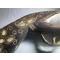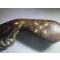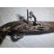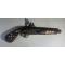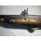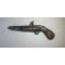 À vendre, reproduction d’un pistolet à silex de style oriental, longueur totale 37 cm. Crosse en bois décorée d’incrustations imitation os, garnitures en laiton. Mécanisme sommaire, non fonctionnel pour le tir, vendu strictement comme objet de décoration ou pour collectionneur.