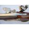 Pistolet à silex modèle 1763-66 premier type de Maubeuge construit en 1769, platine a corps carré et chien plat avec le marquage en cursive de la Manufacture de MAUBEUGE et le poinçon CS du contrôleur Cousin en poste de 1754 à 1785. canon poli blanc avec sur la queue de culasse M 1763, sur le pan gauche 69 pour 1769 et le poinçon CS sous couronne. bouche bien épaisse. Pas de ressort de baguette. Poinçon F sous couronne sur le pan droit (Geoffroy de Fleury ?). monture en noyer blond avec marquage côté contre platine au centre une fleur de lys sous couronne, de chaque coté CS pour cousin, poinçon F du contrôleur Geoffroy de Fleury, et en dessous 69. à l’exception de l’embouchoir Les garnitures sont poinçonnées F (à l'intérieur pour la contre platine).