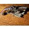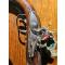 Canon rond, largement évasé à la bouche(2.9cm), platine à corps arrondi, chien à col de cygne, garnitures fer, pommeau aplati à oreilles, fût de noyer à décor floral.