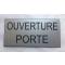Panneau adhésif "OUVERTURE PORTE" format 98 x 200 mm fond ARGENT