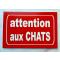 Plaque "ATTENTION AUX CHATS" format 100 x 150 mm fond ROUGE