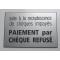 Plaque PAIEMENT PAR CHEQUE REFUSE argenté format 10x15 cm