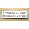 Plaque adhésive "ATTENTION AU CHAT REFERMER LA PORTE " format 29 x 100 mm fond BLANC