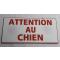 Plaque adhésive "ATTENTION AU CHIEN " dimensions 48 x 100 mm fond blanc texte rouge