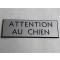 Plaque adhésive "ATTENTION AU CHIEN " format 25 x 75 mm fond argenté