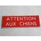 Plaque adhésive "ATTENTION AUX CHIENS " format 29 x 100 mm fond ROUGE