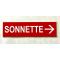 Plaque adhésive SONNETTE + FLECHE à droite rouge Format 29x100 mm