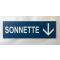 Plaque adhésive bleu SONNETTE + FLECHE EN BAS Format 29x100 mm
