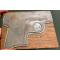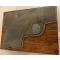 Petit bloc en chêne,10.5 cm x 8 cm x 2 cm env, recevant la matrice, en négatif, de la vue d'un pistolet pour l'impression de catalogues de vente d'armes d'avant guerre.