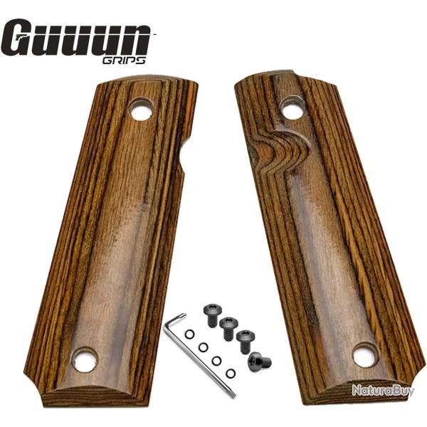 Plaquette de crosse pour pistolet en bois teinté de la marque Guuun pour pistolet à poignée type 1911 Government.