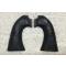 Bon état sauf une petite fissure sur la plaquette de gauche, voir flèches rouges (mais la plaquette n'est pas cassée ni recollée). La droite est en très bon état. Il y a quelques bulles lors de la coulée mais elles ne sont pas visibles une fois les plaquettes en place. Il y a aussi des inscriptions à l'intérieur, sûrement d'un ancien propriétaire.
