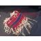 Joli plastron perlée, en cuir rawhide, peau et perles bleues et rouges. Parfait pour reconstitution indianiste, décor ou collection.