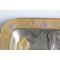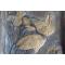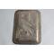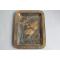 Ancien plat en métal embossé à patine argentée et dorée, à décor en bas-relief de grues et de fleurs sur una face, et d'un poisson sur l'autre Japon bon état