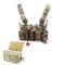 Cette plate-forme comprend 4 doubles pochettes de chargeur AR15/M4 pouvant contenir 8 chargeurs de type STANAG, avec des pochettes supplémentaires empilées à l'avant. La pochette de chargeur centrale droite a deux pochettes de chargeur de pistolet intégrées qui peuvent également être utilisées pour les chargeurs rapides et sont maintenues fermées par deux rabats velcro séparés.