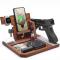 Plateau EDC en bois, station d’accueil pour objet du quotidien ainsi qu’une arme de poing en bois.