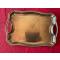 Plateau en métal assez lourd, quelques rayures et des marques, autrement en bon état, dimensions en partant du bout des poignées, longueur : 43,5 cm, largeur : 30,5 cm, pas de prix de réserve.