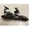 Platine à la chenapan Italienne du 18 siècle,longueur total 150 mm hauteur total 75 mm hauteur du corps de la platine 26 mm ,le métal avec des décors des figures en relief,intérieur avec des ressorts fermes,manque une petite partie de la détente un couvre bassinet poids 398 grammes,vendu dans l'état.