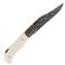 Longueur totale (mm) : 195 Longueur de la lame (mm) : 90 Largeur de la lame (mm) : 21 Épaisseur de la lame (mm) : 3 Matériau de la lame : Damas carbone Matériau du manche : Ivoire de Mammouth Système : Pompe Arrière Poids (g.) : 100 Pays d'origine : France