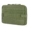 Grande poche horizontale à ouverture par rétention d'élastique (permet une ouverture à plat). Contient un porte-carte transparent, une poche interne zippée et des élastiques de rétention. Fixation MOLLE.