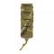 Cette poche pour chargeur longs ou bâton téléscopique ( ou tout autre objet de taille similaire ) est conçue pour les rechargements rapides tout en garantissant une rétention sécurisé. La matière intérieure de la poche ainsi qu'un élastique de réglage permettent au magasin de rester en place même lors de sauts ou de courses. Elle se fixe soit par système Molle soit à la ceinture grâce à deux paracordes latérales.