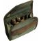 Pochette à balles en cordura naturelle fermée sur les côtés, 10 tubes multicalibre, inserts élastiques pour tenir les balles, broderie en fil vert, passant pour ceinture et fermeture silencieuse en cuir nabuk sans métal.