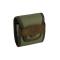 Pochette à balles en Cordura naturelle fermée sur les côtés, 7 tubes multicalibre, inserts élastiques pour tenir les balles, broderie en fil vert, passant pour ceinture et fermeture silencieuse en cuir nabuk sans métal.