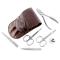 Pochette manucure Alpen, en cuir, 5 pièces inox satiné : pince à ongles, ciseaux à ongles, ciseaux à envies, pince à épiler, lime à ongles.