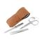 Pochette manucure ALPEN, cuir tabac, 3 pièces inox satiné :