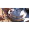 Le manche de cette poêle, conçu en acier et silicone, se détache facilement et intègre un décapsuleur, ajoutant une fonctionnalité pratique pour les moments conviviaux en cuisine.